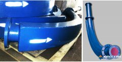 (1)活肘板的防磨彎頭某種特殊結(jié)構(gòu)的防磨彎頭。考慮到彎頭的磨損一般發(fā)生在背部,該彎頭在背部設(shè)計(jì)了可拆卸的肘板。當(dāng)肘板磨穿后,不必將整個(gè)彎頭更換,只需將肘部四只螺絲拆下?lián)Q上新的肘板即可。不僅節(jié)省了維修費(fèi)用,而且省時(shí)、省力、靈活方便。如耐磨陶瓷背包彎頭