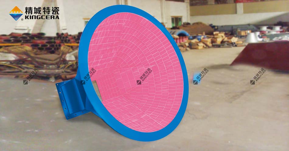 陶瓷襯板,它的制作和安裝工藝都相對復雜。首先,天圓地方管內部為弧形結構,需要采用多種形狀的陶瓷,讓方形和弧形內襯更平整光滑過渡,且不存在方管面與圓管面間的掛料角,這樣才能盡可能的避免積料和堵煤。而且陶瓷弧度按圓管直徑設計,每圈陶瓷拼接成一個圓形,使瓷塊之間緊密連接,無縫隙;當一圈的最后一塊緊密嵌人后,瓷塊之間形成360°的機械自鎖力,保證了陶瓷片安裝牢靠不脫落。