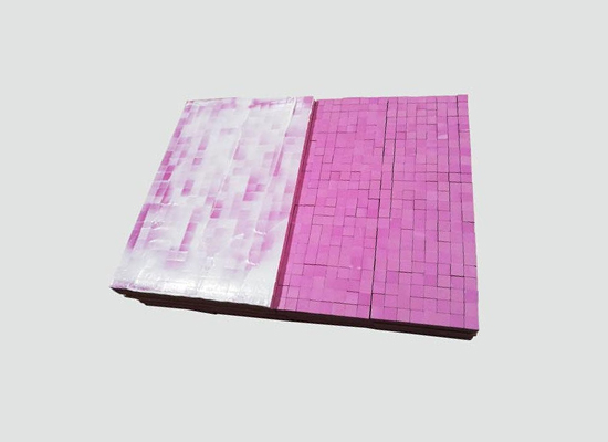 直粘型耐磨陶瓷襯板(NMC-Z)是先將耐磨陶瓷片粘貼在膠紙上,形成不同大小的陶瓷襯板。使用時再用無機耐高溫粘合劑(GWJ-350)直接粘貼在設(shè)備內(nèi)壁,經(jīng)固化后形成牢固防磨層。