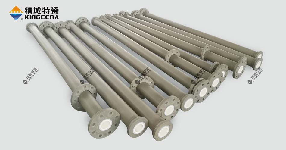 陶瓷內襯高分子管是在高分子管道內內襯耐磨陶瓷,可以使用陶瓷環,也可以使用精城新研發生產的整體成型陶瓷長管,陶瓷內襯防磨防腐蝕,高分子外管作為結構支撐。