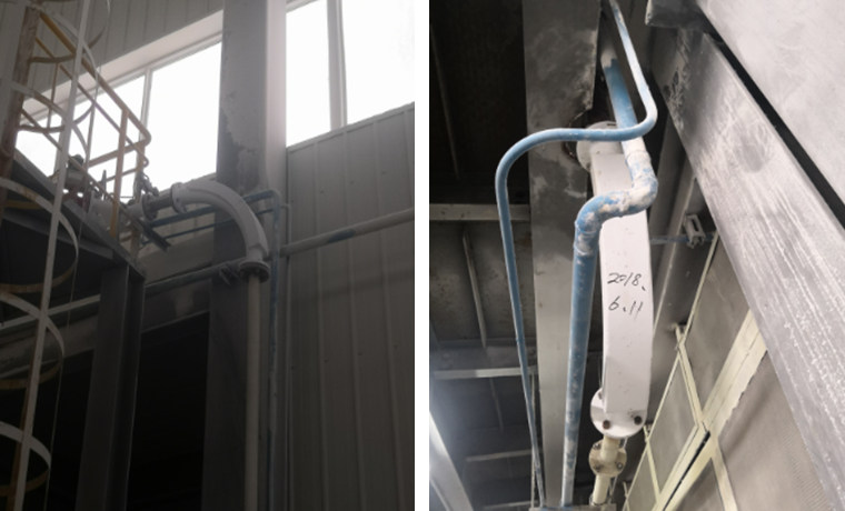 在粉末輸送系統(tǒng)中,采用大量的管道。這些管道通常都存在嚴(yán)重的磨損問題。我公司在遼陽大連的一家客戶就是生產(chǎn)陶瓷纖維產(chǎn)品。他們的主要原料是氧化鋁粉、剛玉沙、白云石等。以前,他們的輸送管道都是采用普通加厚的碳鋼管。使用壽命短,特別是彎頭,一般使用7到10天就會磨穿。