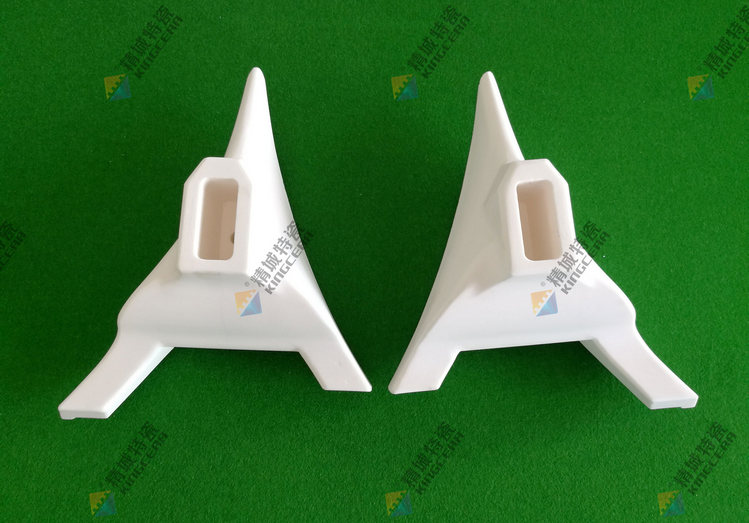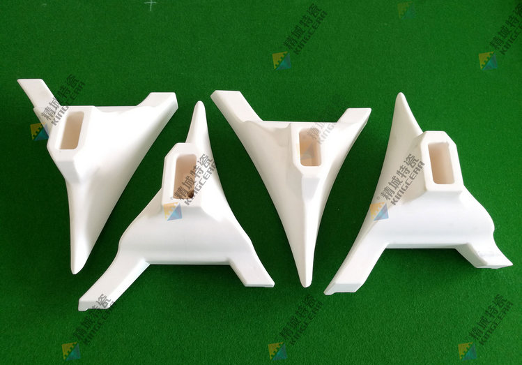 前期我公司為他們解決了混合機筒體陶瓷內襯、進料口陶瓷環內襯等問題。但混合機犁頭,因造型復雜,單件體積較大。純陶瓷化一直是待解決的難題。