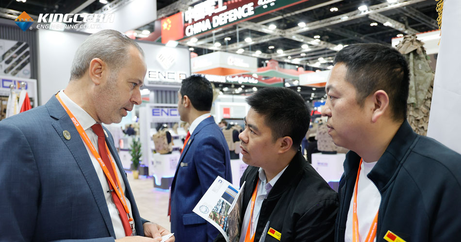 我公司營銷總監魏曉軍和外貿部部長黃永泉兩位同事攜帶公司最新研發的防彈陶瓷產品參加了此次盛會。在為期五天的展會期間,兩位同事拜訪了俄羅斯、捷克、泰國、埃及、印度、美國、約旦、希臘、土耳其、安圭拉、烏茲別克斯坦、北馬其頓共和國等二十多家做防彈插板的公司。與他們進行了深入的技術探討和業務交流。國外客戶對我公司生產的防彈陶瓷產生了濃厚的興趣。期待后期進行深入合作。