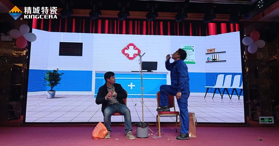2021年12月24日晚,湖南精城特種陶瓷有限公司一年一度的年會在晟天大酒店隆重舉行,本次晚會由精城特瓷工會組織策劃,公司全體人員共同參與,晚會不但準備了豐盛的晚宴,還有許多同事利用業余時間設計排練的才藝表演。